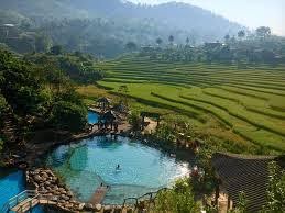 Arriving at Tram Tau, the guide will take you to Tram Tau Hot Spring Ecotourism Area . Here, you can take a bath at your own expense in 4 hot mineral swimming pools at different temperatures to suit all your needs. |