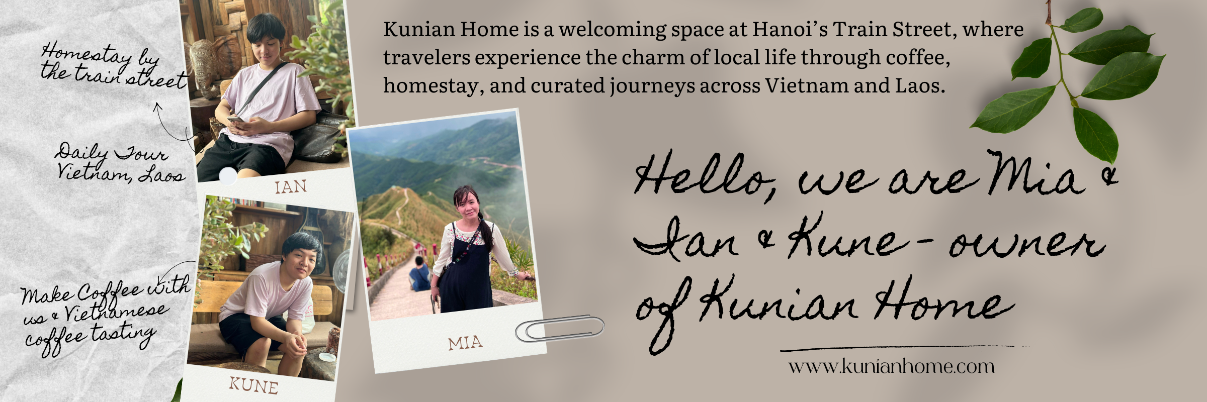 From the heart of Train Street, Kunian Home helps you plan unforgettable journeys across Vietnam. Whether you’re looking for a quick day trip or a longer adventure, we’ve got you covered.